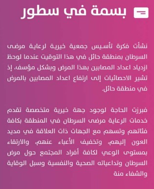 الرسالة: الرعاية والتميز في تقديم خدمة شاملة لمرضى السرطان وذويهم وتوعية أفراد المجتمع في منطقة حائل.